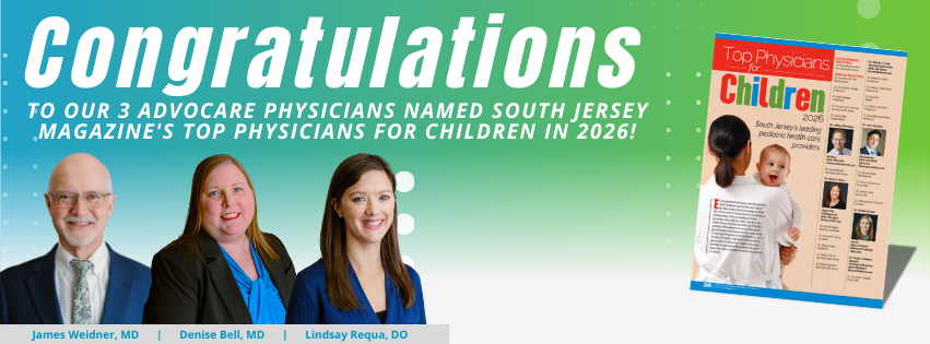 Three of our physicians at Advocare Cornerstone Pediatrics have been recognized as Top Doctors for Children – 2026 by South Jersey Magazine. This honor reflects their dedication, compassion, and commitment to providing exceptional care to the children and families we serve every day.